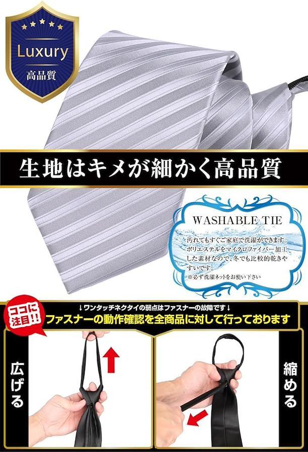 ワンタッチで装着可能なファスナー式のネクタイです。