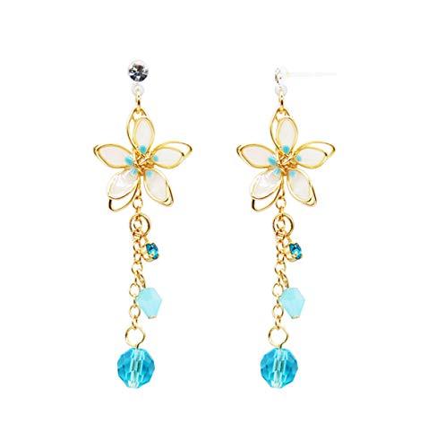 ONNFMH Earrings, 18k Plated, Flower, Cherry Blossom, Swinging, Japanese Style, Popular for Women (Yellow Earrings)