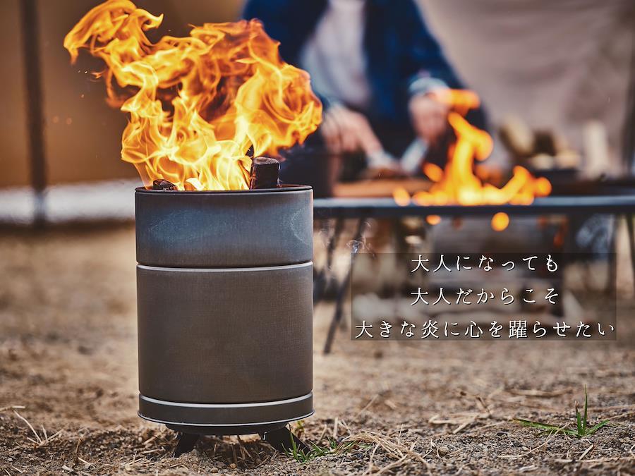 煙突効果で抜群の燃焼効率カバーをつけると二次燃焼組立サイズ(約):ф220×390㎜質量:2.5kg原産国:日本