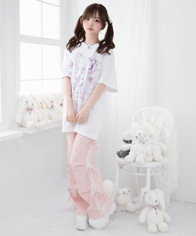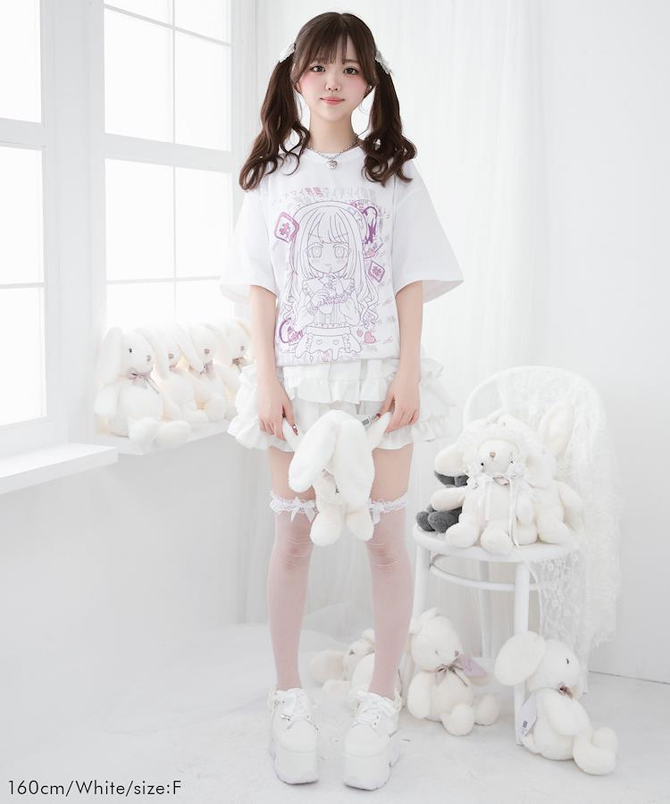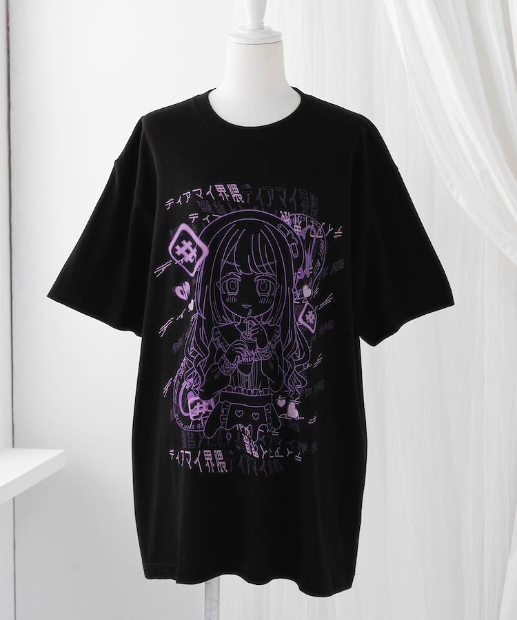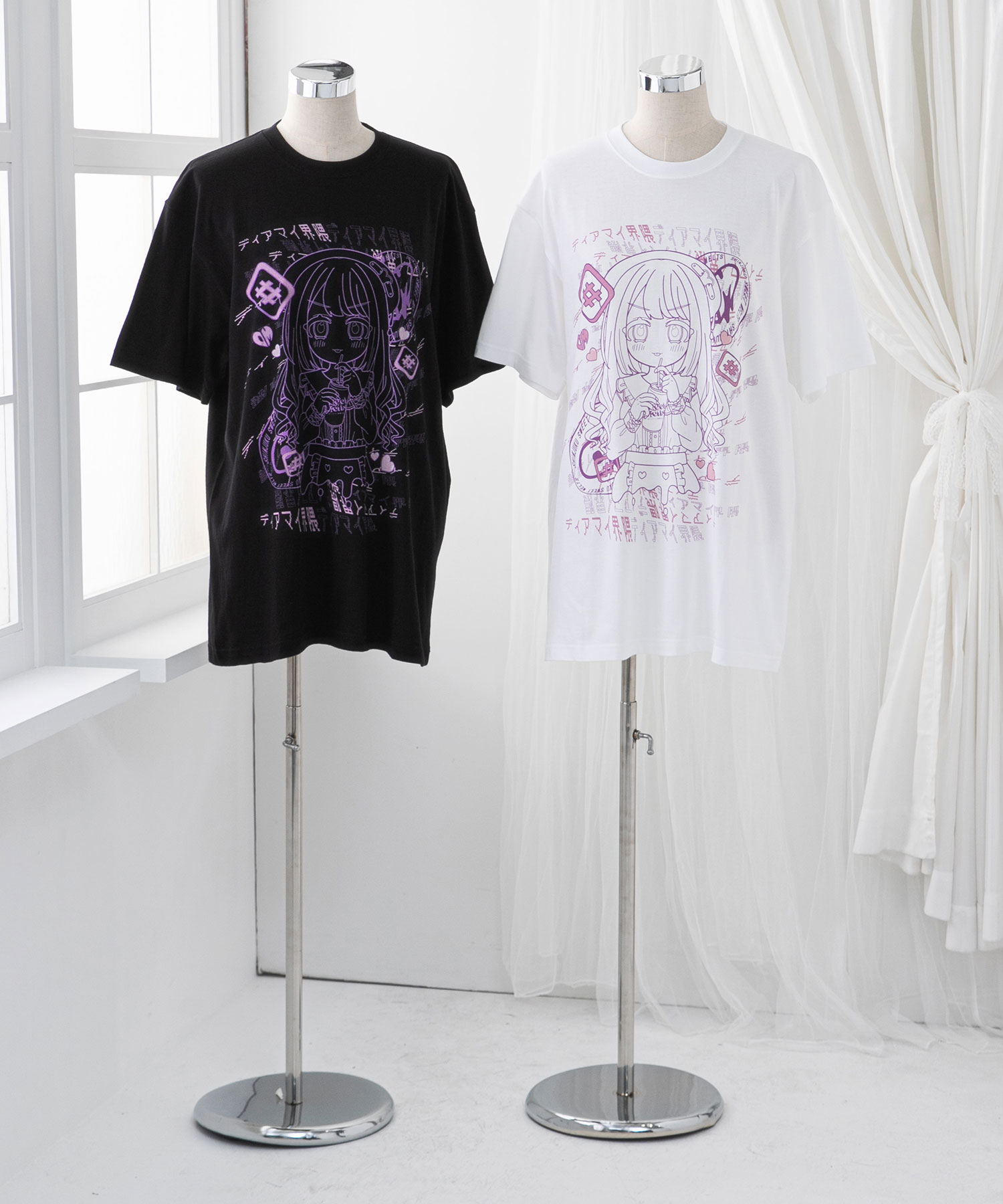 イラストレーター尾上おこめさんに描きおろしいただいた女の子をDearMyLoveらしいデザインに落とし込んだプリントです。サイズ感はゆったりとしているので、暑い季節でも楽に着られます。着回しやすいホワイトとブラックの2色展開◎