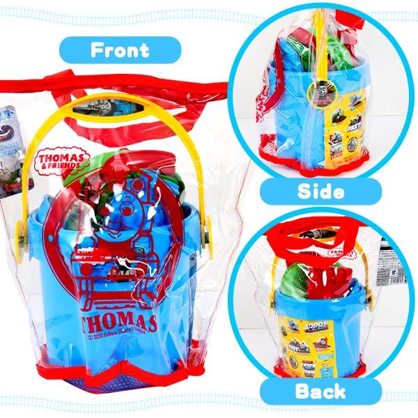 お片付けバック、砂型2個、くまで、ふるい、スコップとデコレーションシール付きのお砂場セット ※セット内容のカラーは画像と一部異なる事がございます。色の選択は出来ません。 バケツやスコップ砂型などなどボリューム満点♪ ビニール製の袋には網目も付いており 砂遊びで着いた砂も落ちる仕組みに! ■対象年齢:3才以上