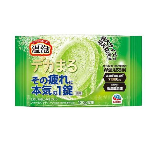 製品の特徴●特大サイズで仰天発泡!溜まった疲れをガツンと回復:強力発泡で、有効成分がお湯にすばやく広がる。高濃度炭酸(※1)・温泉成分(※2)の血行促進(※3)と高濃度(※1)イオンのベールの温浴保護で、温浴効果をUP!(※4)●約2.5倍(※1)、医薬部外品最大量(※5)のデカい100g錠剤。●高濃度(※1)温泉成分(※2)のイオンのベールでポカポカ感が続く。●とろける極上の湯ざわり。●8種の植物エキス(保湿成分):カッコン・生姜・トウガラシ・ニンニク・ニンジン・ゴボウ・タイム・チョウジ●ロイヤルゼリー・アルギニン配合(保湿成分)。●入れた瞬間に香りがあふれ出す。・ウォームウッドハーブの香り:ディープグリーンの湯色(色付き透明)/爽やかなハーブの香りに、マイルドなウッドを加えました。深~く温かみのある香りです。※1 温泡こだわりゆず(40g)との比較※2 炭酸水素ナトリウム、炭酸ナトリウム、乾燥硫酸ナトリウム※3 温浴効果による※4 さら湯との比較※5 医薬部外品承認基準最大※ アレルギーテスト済み(全ての方にアレルギーが起きないというわけではありません。)
