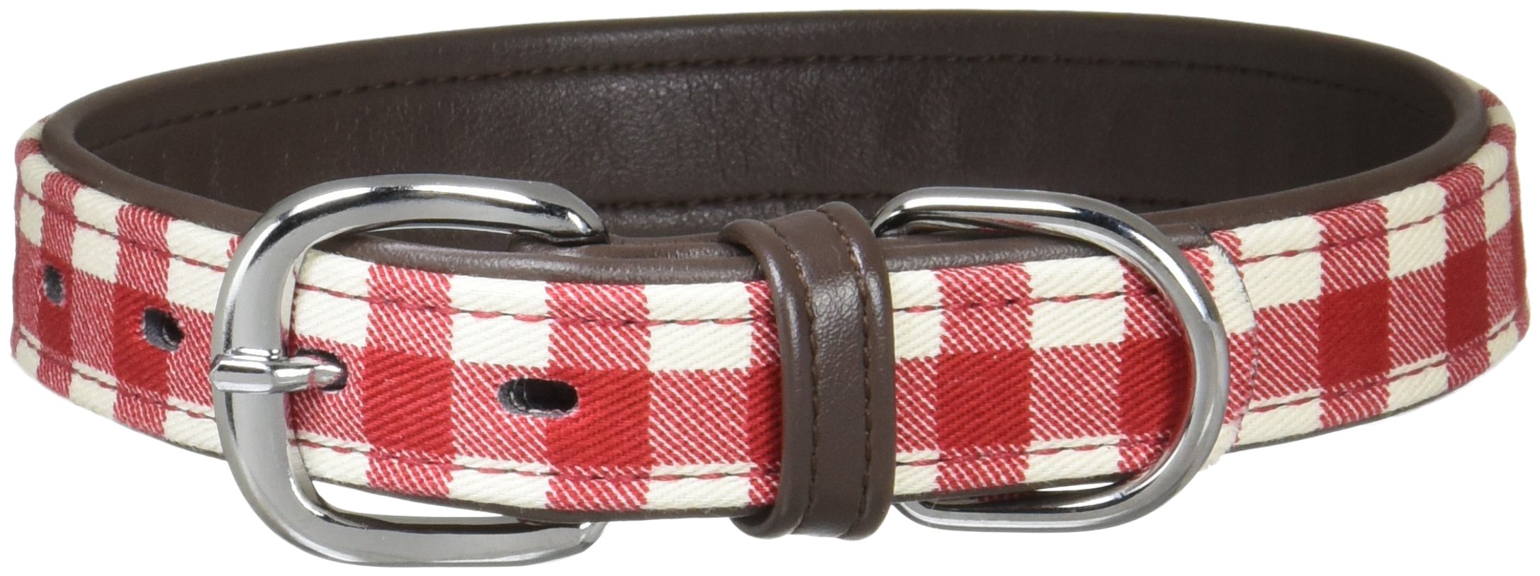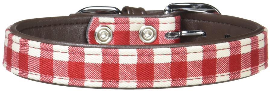 合成皮革の裏地に、ベーシックなチェック柄が可愛いピンタイプ首輪