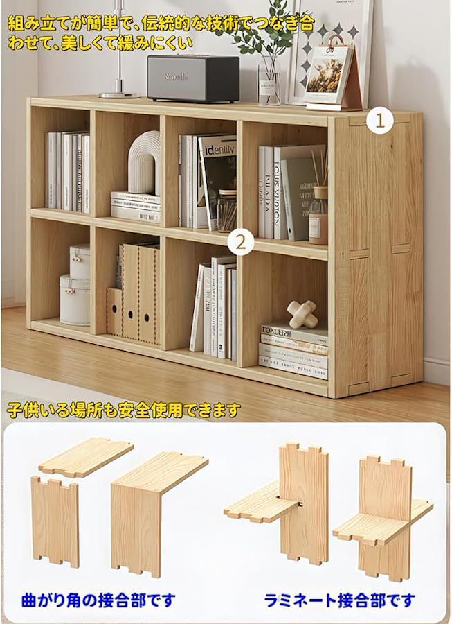 高品質な実木を使用し、耐久性と安全性を兼ね備えた設計で、棚板や引き出しを備え、本やおもちゃ、小物を整理収納できます。