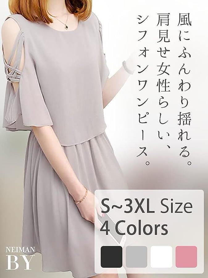 シフォンの透け感と風に揺れるふんわりとしたシルエットが女性らしさを 引き立ててくれます。