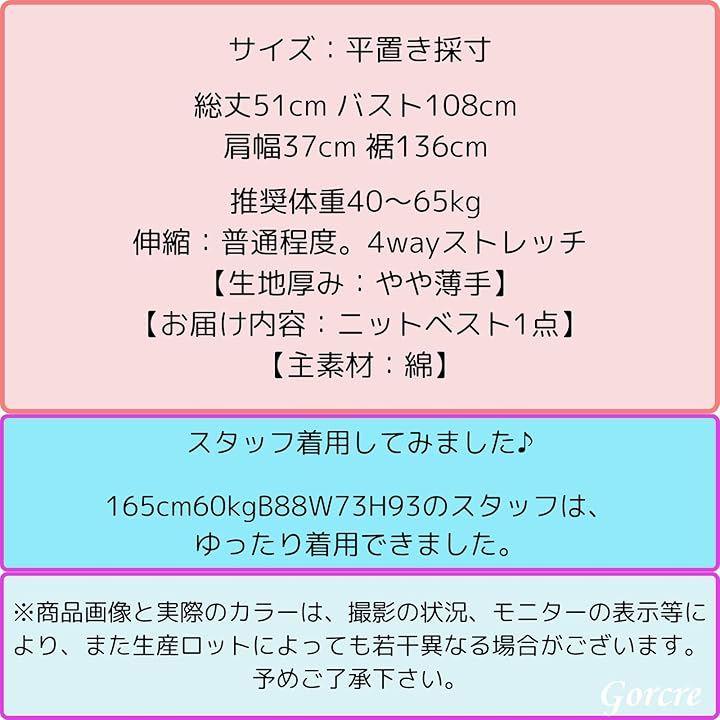 「サイズ」総丈51cm バスト108cm 肩幅37cm 裾136cm 推奨体重40~65kg 伸縮:普通程度。