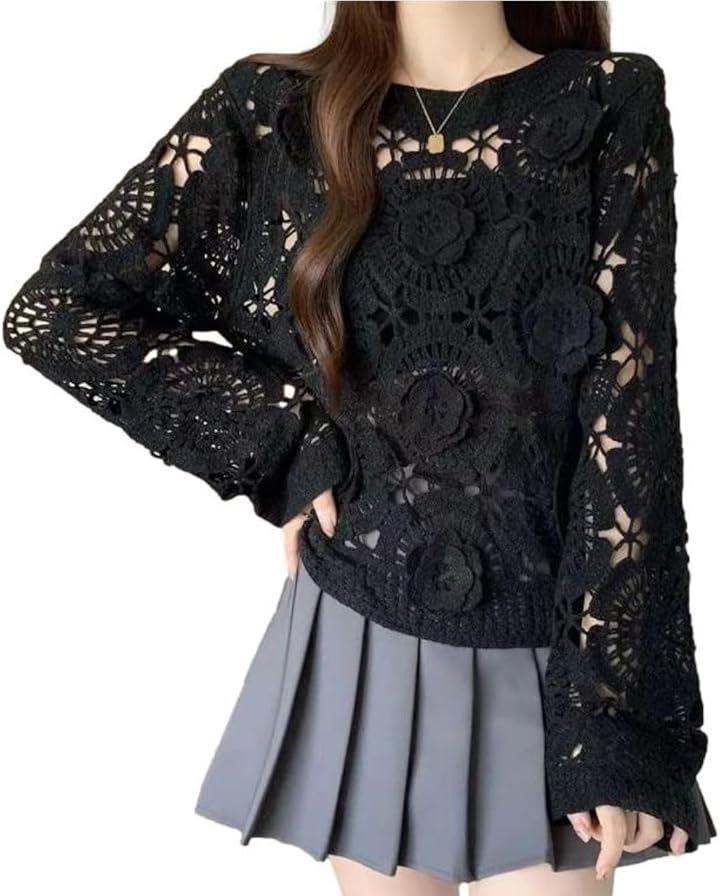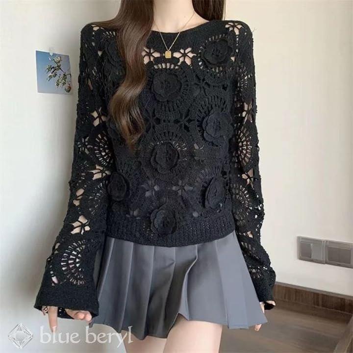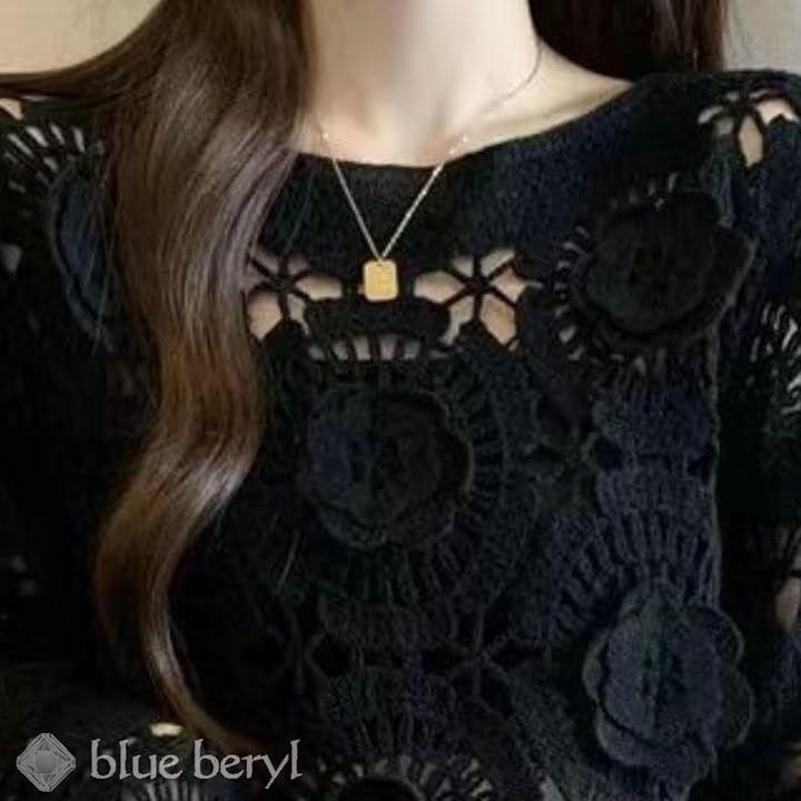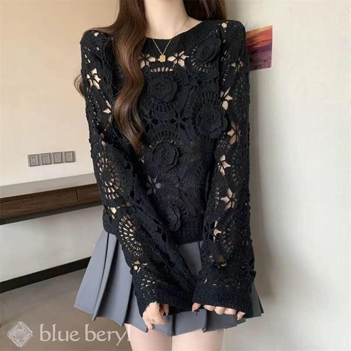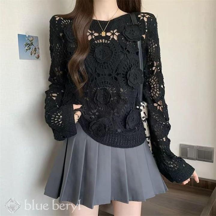 「繊細な透かし編みレースで軽やかに」 愛らしく繊細なサークルレースを全面に施したプルオーバー。