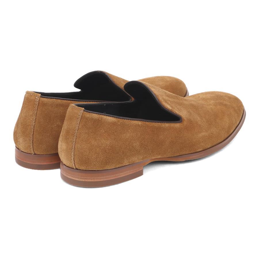 | オペラパンプス 【素材】 高級感のある染色と、クリームを丁寧に馴染ませて仕上げられたカウクラストレザー。 足馴染みの良い柔らかさと上品な艶が特徴です。 ※本革を使用している為、多少のムラや小傷などがございます。 【デザイン】 ブランド定番のオペラシューズをリモデル。 もともと品のあるシンプルなアイテムに、底材のウェスト部分をシェイプさせて、よりエレガントなルックスに仕上げました。 大人カジュアルをさり気なく演出するローヒールは足にも負担がかかりにくく、吸汗性のあるマイクロファイバーをライニングに使用する事で、快適な履き心地をキープしてくれます。 また、返りの良いマッケイ製法で屈曲も良くなっています。 一般的なオペラシューズよりもトップラインを後ろに設計しているので、より革靴っぽく使えるのもポイントです。 素足で履いたりソックスとコーディネートして楽みたい一足です。 【サイズ】 通常の革靴で25.5cm、スニーカーで26.5-27cmを着用するスタッフで<41>でジャストサイズでした。 ※サイズ感は、個人差がございますのであくまで参考程度にお考え下さい。 ■ブランド...whoop'-de-doo' costume no age ■カラー...BLACK,BLACK SUEDE,CAMEL SUEDE ■アッパー素材....牛革 ■底材.....合成ラバー ■ヒール...約2cm ■重さ(片足)...約320g ■中国製 *上記は全て25.5cmで計測した数値です。 *多少の誤差が生じる場合がございますので予めご了承下さい。 whoop de doo co.,ltd whoop'-de-doo' フープディドゥ |