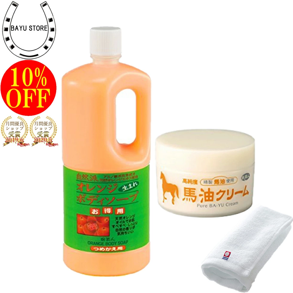Orange Scent Mochi Skin Set [Orange Body Soap Refill & Horse Oil Cream] Horse Oil Bayu Bayu Orange Body Soap Body Cream Azuma Shoji Tabibijin Body Care Refill Alcohol Free Paraben Free
