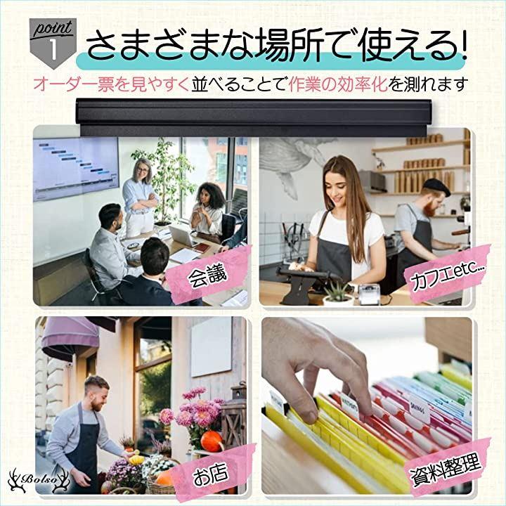 ・業務用の伝票差し、オーダークリッパー。オーダー票を見やすく並べることで、オーダーをスムーズに行うことができます。レストランやカフェなどの厨房はもちろん、会社の会議での資料整理やご自宅でのメモ、お店のポップなど、さまざまな場所でご利用いただけます。