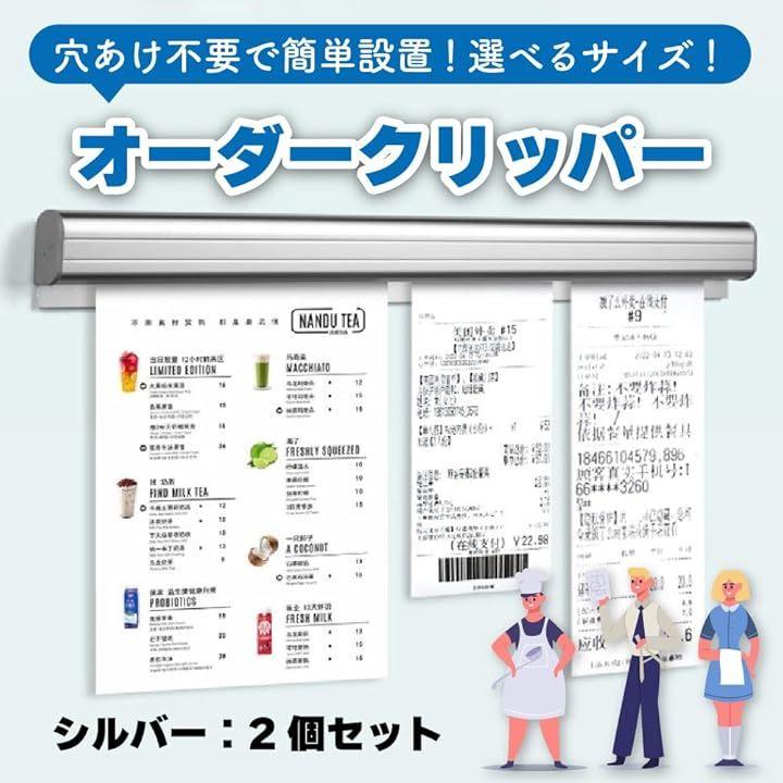 「スマートで省スペース設計の伝票ホルダー」オーダークリッパーは縦約40cm、幅約4cmのスリムなステンレス製で壁掛け可能、余分なスペースを取らずに注文書の整理に最適です。