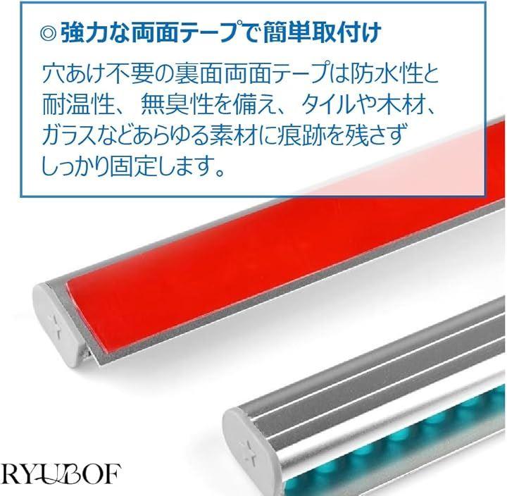 「強力な両面テープで簡単取付け」穴あけ不要の裏面両面テープは防水性と耐温性、無臭性を備え、タイルや木材、ガラスなどあらゆる素材に痕跡を残さずしっかり固定します。