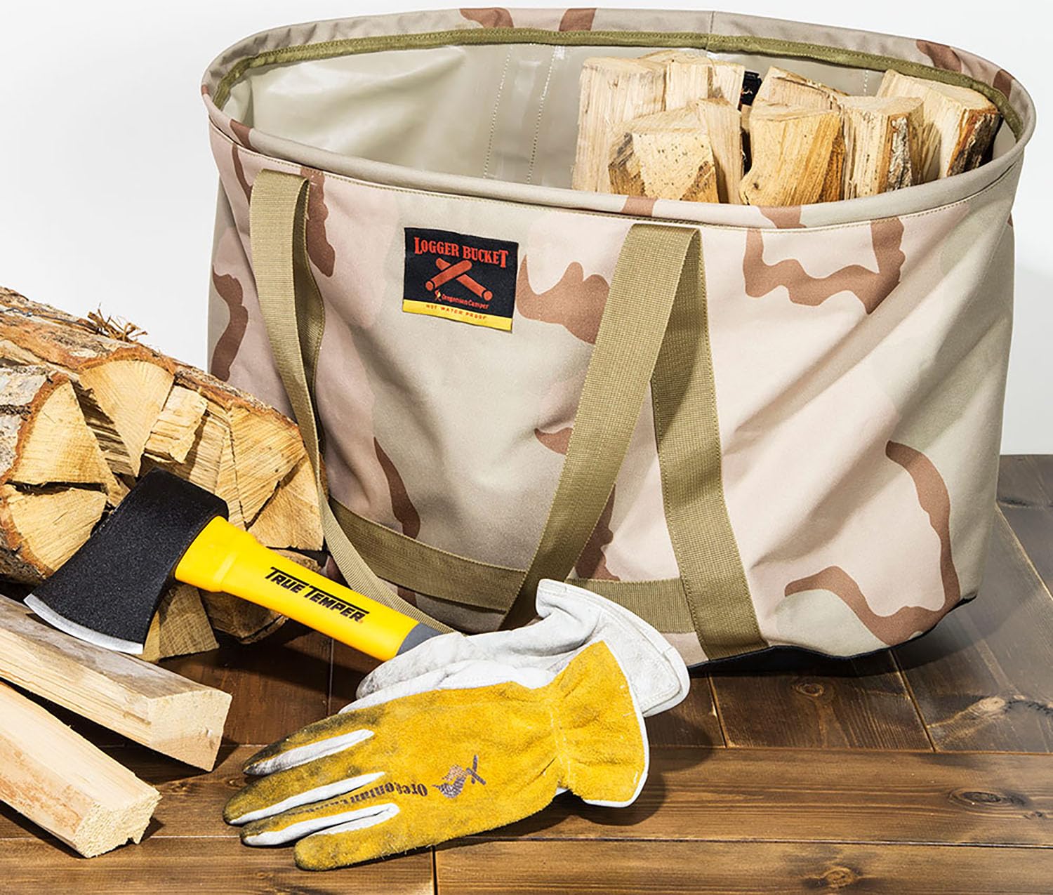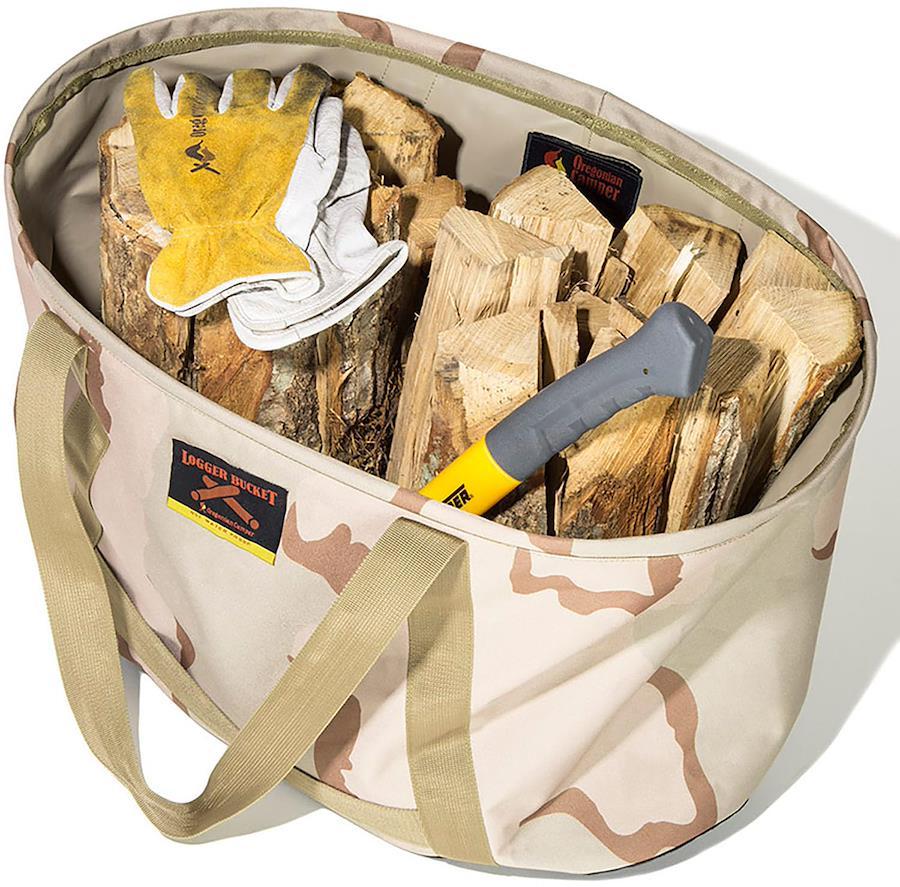 薪入れとしてお使いいただける、楕円形のロガーバケットです。薪は縦にして3束入り、内側は簡単に水洗いが可能。行き帰りはギア入れとして使え、使わない時はぺったんこになりますので場所もとりません。あれば様々な用途に使え、場所もとらない、1つは持っておきたいマストアイテムです。