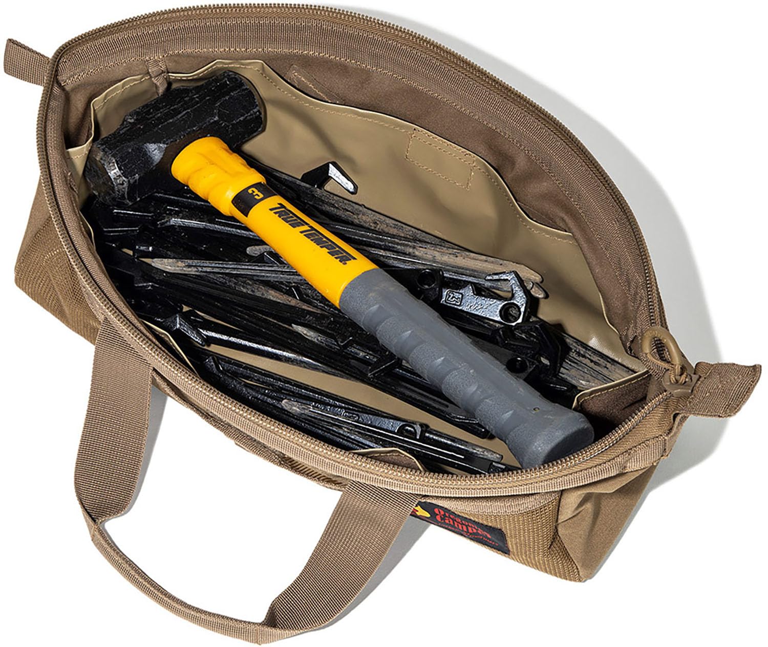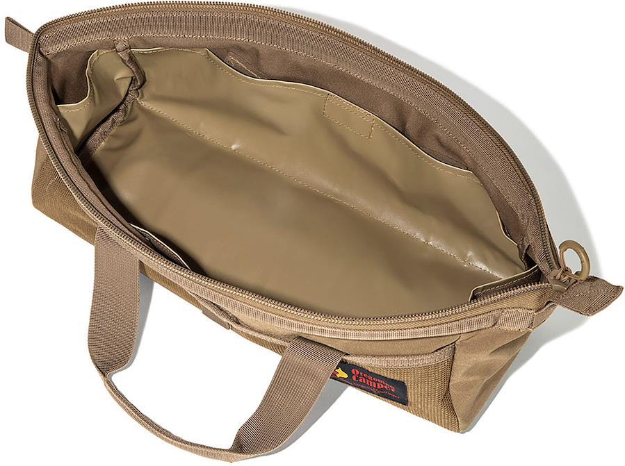 ペグを収納・持ち運ぶために設計されたペグバッグ(ケース)です。バッグ口が大きく開き、ペグを取り出しやすく、大容量ながらコンパクトに収納。バッグ口にやや太めのワイヤーが入っており、型崩れしにくい仕様になっています。メインファスナーをワンサイズアップする事で耐久性と操作性が向上。また、ハンドルテープのアングルを変えることで、ハンドル縫製部へのストレスを低減。底部のPVC素材も、より耐久性があり、傷が目立ちづらい素材に変更。ハンドルラップには、耐久性のあるハイパロン生地を採用しました。使いやすさはそのままに、さらにタフな仕様にアップグレードいたしました。