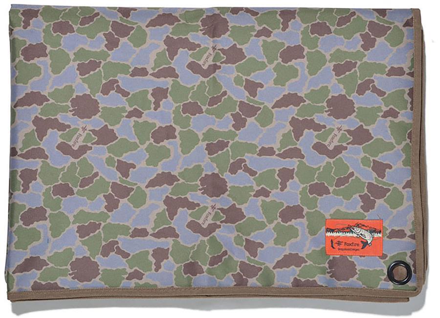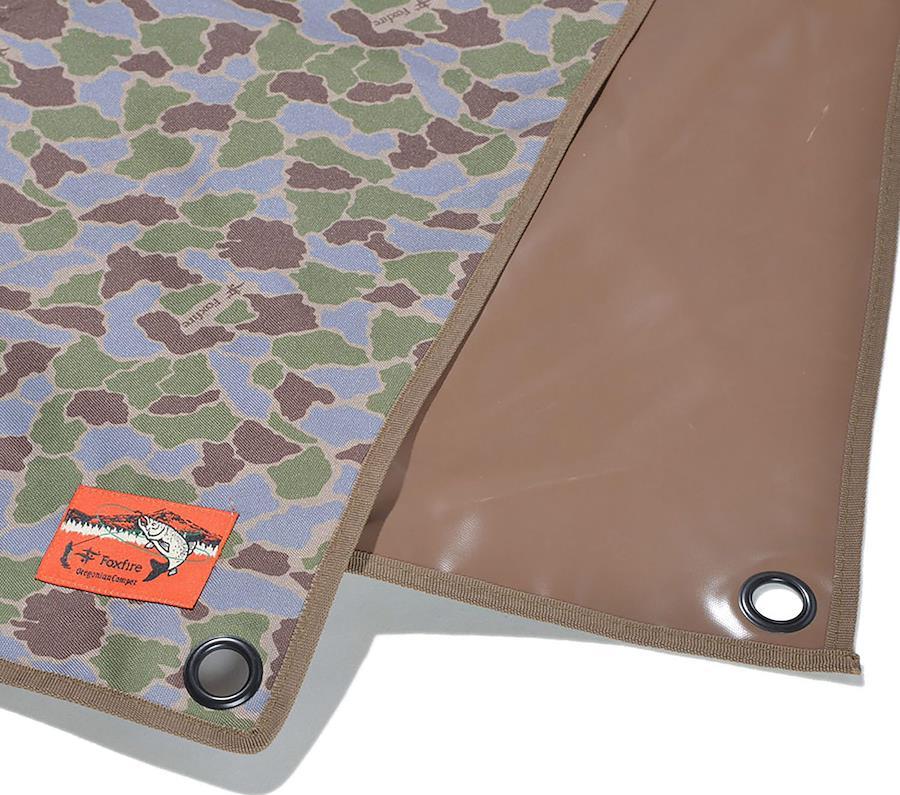 Foxfire 伝統の「FISH EYE CAMO」を採用したシリーズです。魚から見てステルス性が発揮されるFoxfire 独自のカモフラージュ柄。ミリタリーとは一味違うパターンがキャンプサイトを彩ります。裏面に防水加工が施されたグランドシートです。シンプルな無地デザイン。角に施されたハトメにペグ(杭)を打ち、風によるめくれ上がりを防ぐことができます。機能性に優れた、アウトドアシーンで大活躍間違いなしのアイテムです。1~2人程で使えるSサイズから、5~6人程で使えるLサイズまでの3サイズ展開です。お手入れにつきましては、洗濯機での丸洗いはできず、水洗いが可能です。ブラシ等をお使いいただくと良いかと思います。