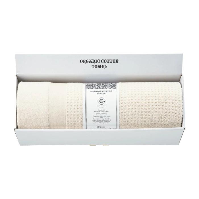 本製品は認証を受けたオーガニックコットンを使用しています。この商品の総質量に収める認証を受けたオーガニックコットンの質量割合は65%であり、パイル部分はオーガニックコットン100%です。