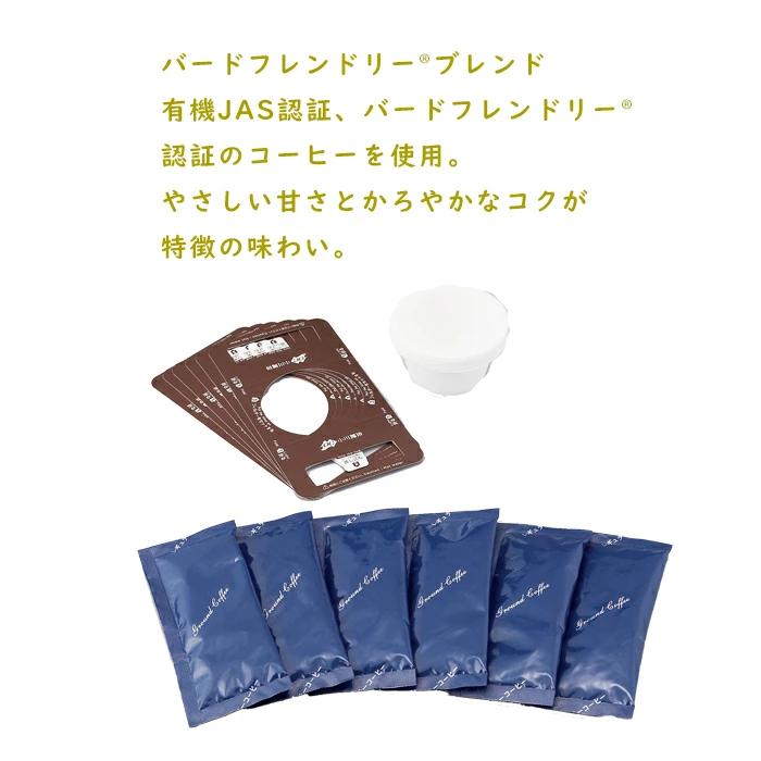 有機珈琲マイルドブレンド、有機珈琲バードフレンドリーブレンド、有機珈琲フェアトレードブレンド各10g×6