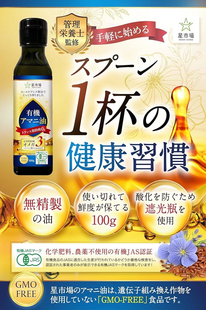 自然と大地が育んだ「有機栽培」の亜麻の種子だけを搾ったアマニ油です。
