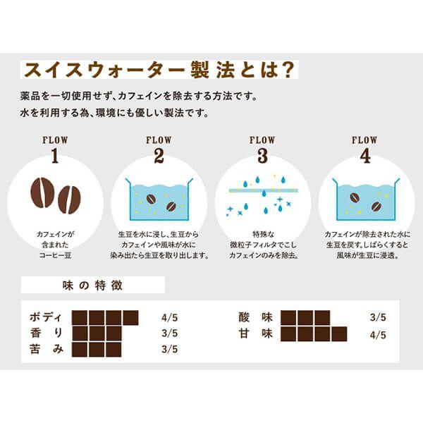 ・薬品を一切使用使用しない地球に優しいスイスウォーター製法でカフェインを除去しました。