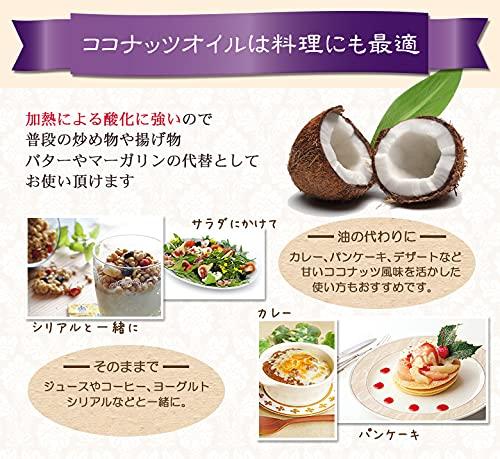 今までの植物性加工油脂に替わる健康的なクッキングオイルとして使いましょう。サラダに混ぜても良いでしょう。約24度以下で白く固まりだします。 保存料を全く含まず、漂白、外見、味に関する加工も一切施していません。そのため、栄養素が損なわれることはなく、長期保存できる非常に安定したオイルです。光・熱・酸素などによる酸化に強いココナッツオイルなので、何度でも湯煎されて問題ありません。【重要】メーカーによる商品リニューアルに伴いパッケージ(内容量も含む)変更が行われた場合、新パッケージでお届け致します事ご了承願います。