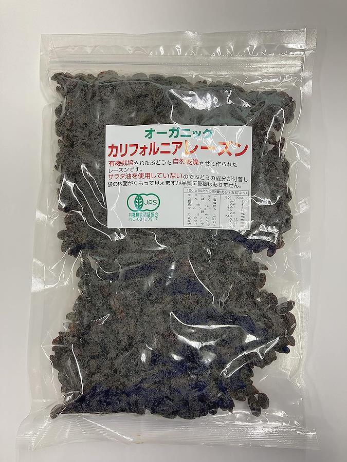 アメリカ産有機レーズンです。植物油を使用していません。有機認証商品です。ノンオイル 無添加