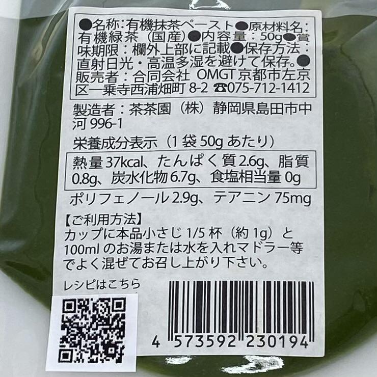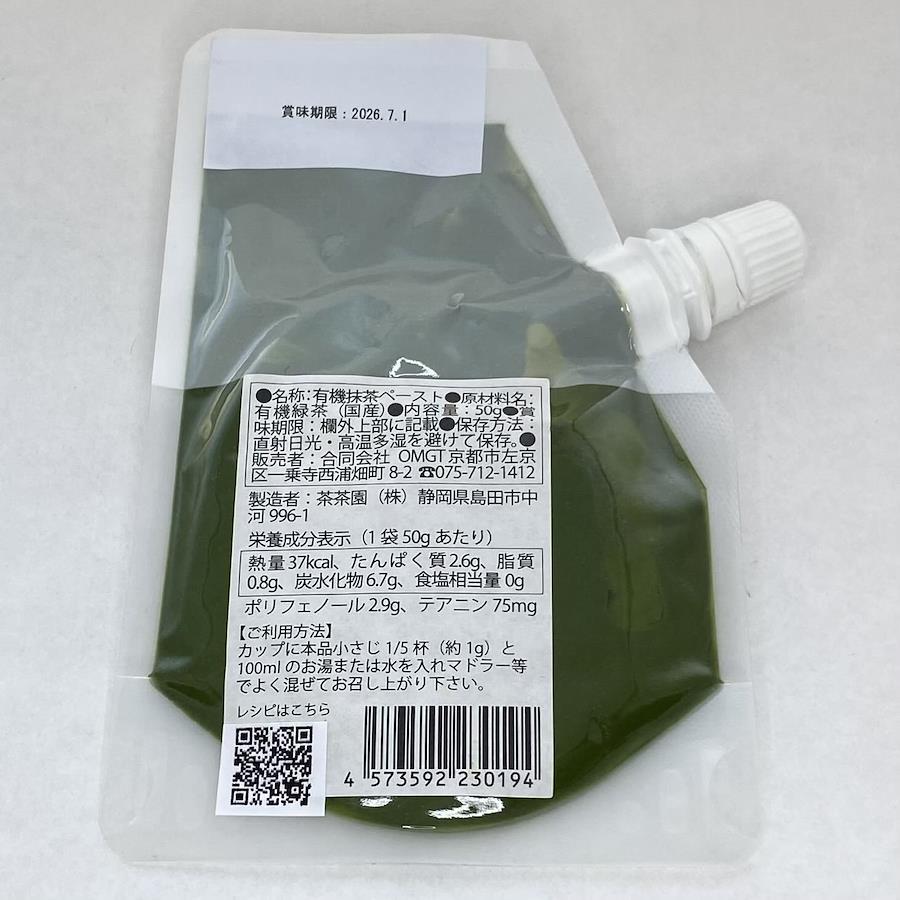 厳選した有機抹茶を、使いやすいペースト状に仕上げました。有機JAS認証を取得し、原材料は有機抹茶と水のみ。砂糖不使用で、抹茶本来の風味を楽しめます。