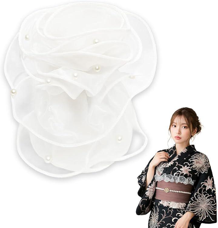 浴衣の帯に重ねてアクセントリボンにしたり、髪飾りとしてまとめ髪に添えるのも。