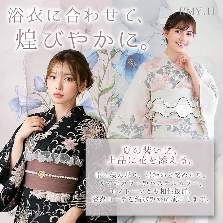 浴衣の帯に重ねてアクセントリボンにしたり、髪飾りとしてまとめ髪に添えるのも。