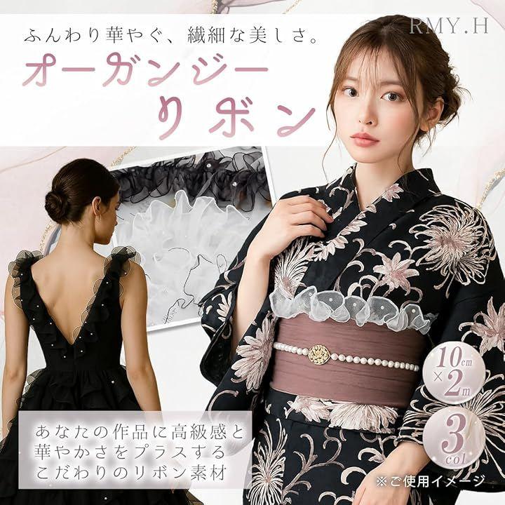 Organza ribbon for yukata, obi, and other ornaments, pearl ribbon, bouquets, lace fabric, and ruffles. Handmade.