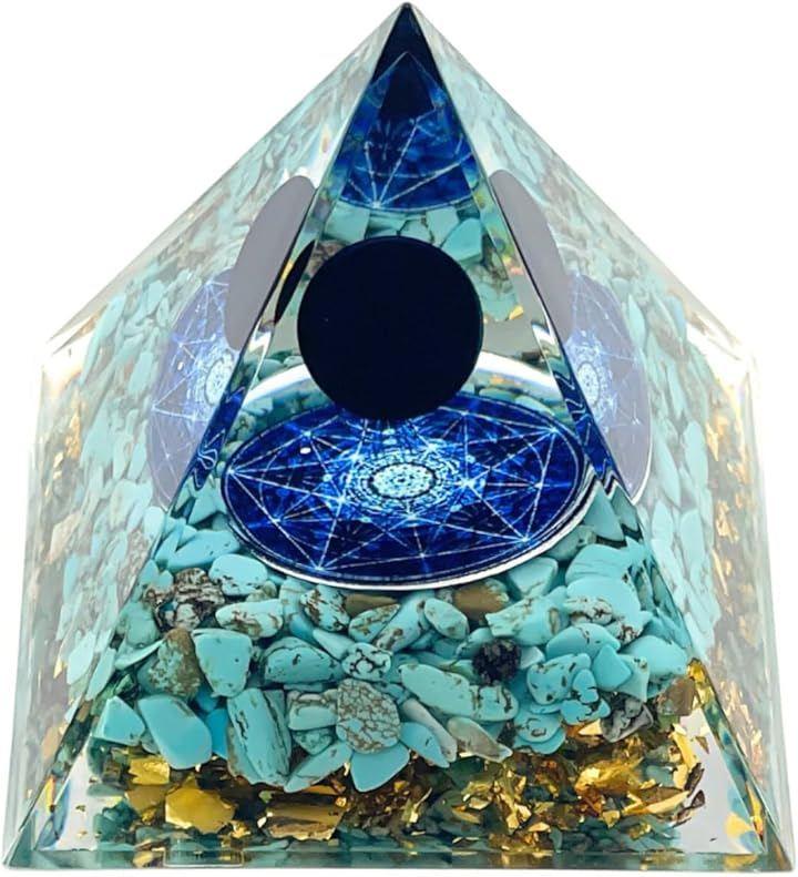 輝くオルゴナイトピラミッドは、ポジティブなエネルギーの源として空間を調和させます。