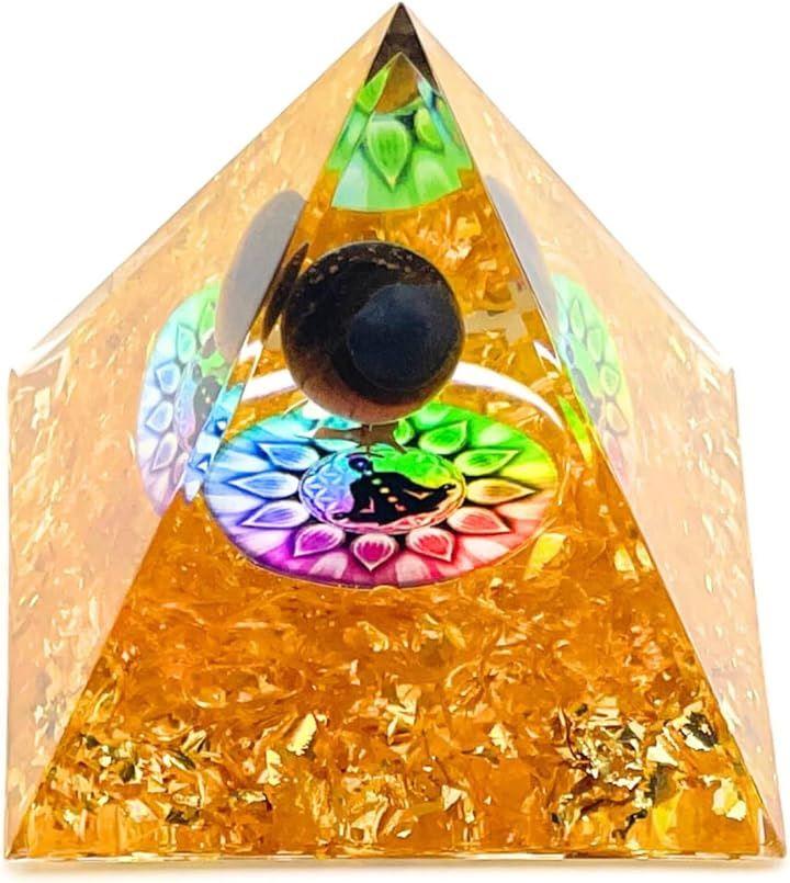 輝くオルゴナイトピラミッドは、ポジティブなエネルギーの源として空間を調和させます。
