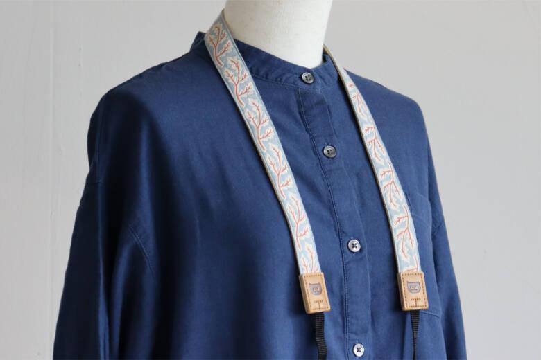 ※このオリボンカメラストラップは、着け心地を重視して肌に触れる面にコットン100%リボンを使用しております。