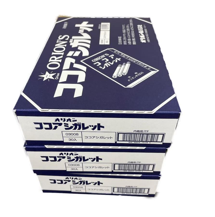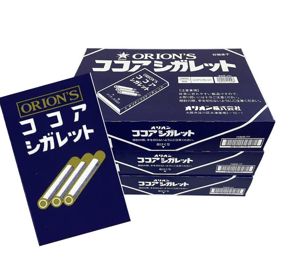 【商品説明】 弊社ロングセラー商品のシガレット型砂糖菓子です。 ハッカの香りとココアの風味が口中いっぱいに広がります。 昭和26年(1951年)より発売しています。 当時は5円販売しており、原料も砂糖とココア、そしてハッカだけのごくシンプルなものでした。 ピーク時には年間1,800万個出荷していました。 現在は、品質安定・安定生産のため、専用の自動包装ラインで機械化生産しています。 駄菓子のロングセラーとして広くマスコミなどに取り上げられています。 タバコを吸うよりこの1本。オリオンは貴方の禁煙を応援します!