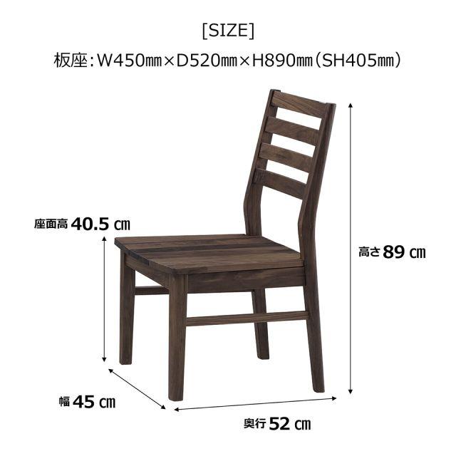 〈製品規格〉■サイズ:PVC座:W45×D52×H89×SH44cm板座:W45×D52×H89×SH40.5cm■重量:5.88kg■材質:ウォールナット無垢■組立:完成品■生産国:ベトナム