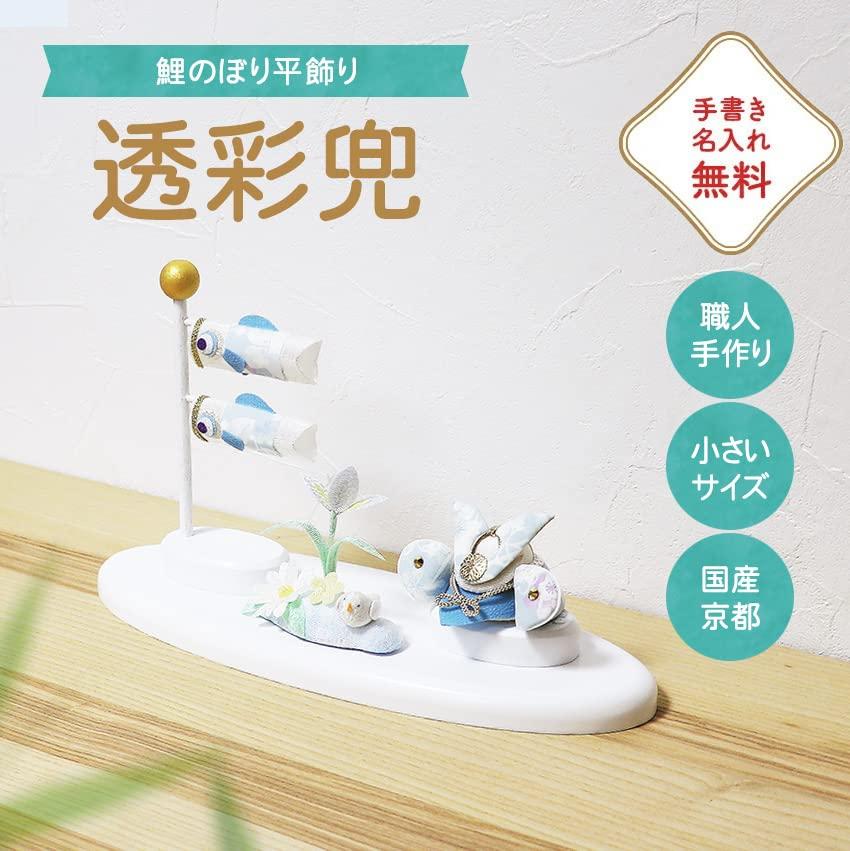 色彩を白と空色でまとめた可愛い端午の節句飾り…スッキリとシンプルなデザインは現代のお家にも似合います。五月の青空をイメージした”そら”にはくもりなく澄みわたる大空へ夢と希望をもって羽ばたけるようにとの願いが込められています。(製作面での都合上、生地の柄がお写真と異なる場合がございます。ご了承ください。) 【サイズ】全体(横幅28×奥行10.5×高さ15.5cm) 【素材】レーヨンちりめん・圧縮木 【製作】京都 【セット内容】兜・鯉のぼり・ちりめん小物・飾り台・箱入り 当店は昭和6年創業の老舗結納店です。日本の伝統や文化を守り続けて約1世紀。当店では雛人形にサービスでお付けしている名入れ木札はすべて「手書き」で行っております。ページ下部の注意事項をご参照の上、お雛様とは別送で名入れ木札をお送りいたします。