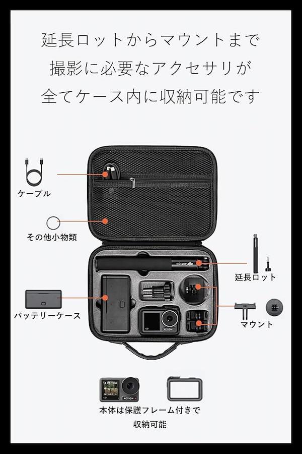 DJI Osmo Action 5 Pro、Osmo Action 4、Osmo Action 3に対応した、持ち運びに便利なアクセサリ収納ケースです。