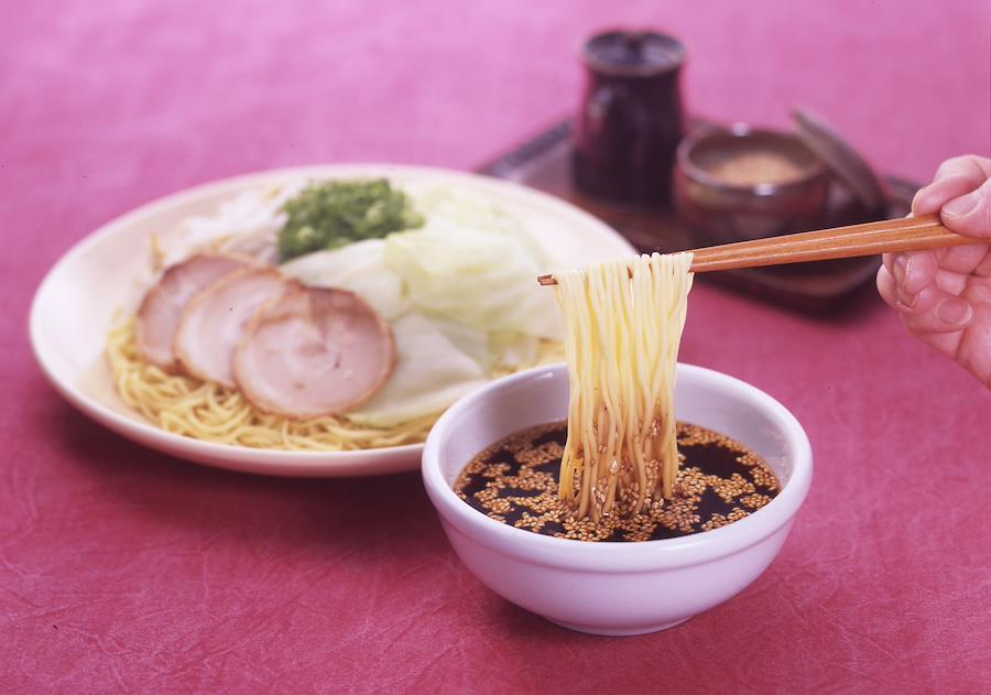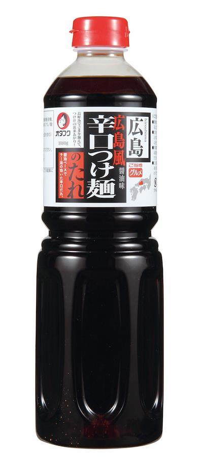 ご当地B級グルメ 広島のご当地メニュー『広島つけ麺』用のたれです。広島つけ麺は、平皿に冷たい中華麺、その上に麺が見えなくなるほどたっぷりの茹でた角切りキャベツ、細長く切ったねぎときゅうり、さらに上にチャーシューを乗せるのが基本スタイル。たれは、醤油ベースでラー油と唐辛子が効いた辛口のたれです。かつおの風味と、辛味、酸味が特徴のたれです。
