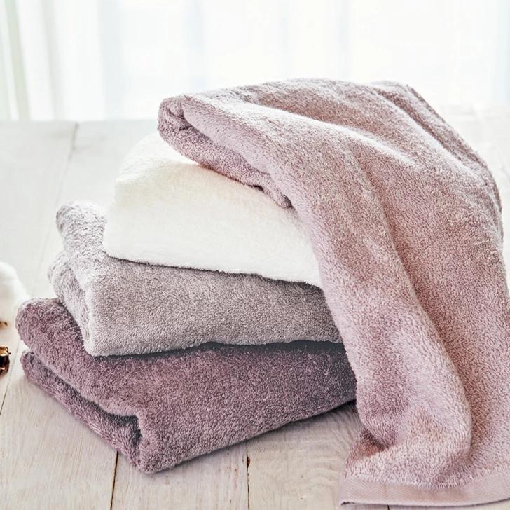 毎日使うタオルを、もっと快適に。OUCHI TSUKAIは、日常で感じられる「快適さ」を追求したタオルです。上質なコンパクトヤーンを使用。毛羽立ちを最小限に抑え、すっきりとした拭き心地に。使い勝手のいいサイズ。バスタオルより一回り小さいコンパクトなサイズは洗濯・収納を快適に。繰り返し洗っても変わらない重厚な質感。洗濯をしてもへたりにくい耐久性に優れたコシのある太番手の糸を使用。目にも心地よいグラデーションカラー。インテリアになじみやすい落ち着いた色合い。