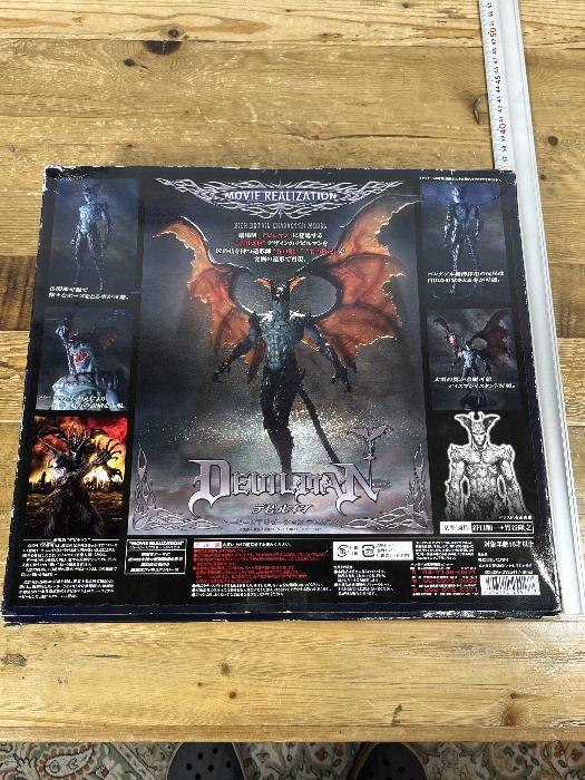 SICでおなじみの原型師達による、映画を題材にした新シリーズ「ムービーリアリゼーション」の第2弾。東映・東映動画合作の超大作「デビルマン」より、主役のデビルマンを、谷口順一造形、竹谷隆之監修により立体化。特徴的な翼は取り外し式にて再現。4543112254177<%% SHIPPING %%>箱入りでの長期保管品です。開封済みのused品となります。日焼け環境下だったか不明なため、商品の状態は画像をご参照くださいませ。外箱や本体に保管に伴う経年劣化がある場合がございます。