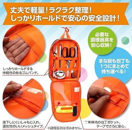 「用途」包丁、ハサミ、ナイフ、ピーラー、カッターなどの鋭利な刃物からまな板、オタマ、シャモジ、ヘラ、トング、シャープナー、ステーキフォーク、菜箸、カルビナ等々、安全、コンパクト等々、整理し手軽に持ち運べます。