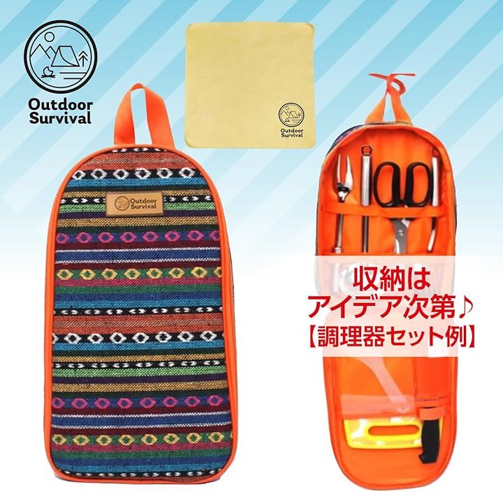 「特徴」みんなが選んだOutdoor Survival(アウトドア サバイバル)ブランド。アウトドアで使用する調理器具などのキッチンツールやアイテムを安全・コンパクトにまとめて持ち運べる。マルチキッチンツールバッグです。