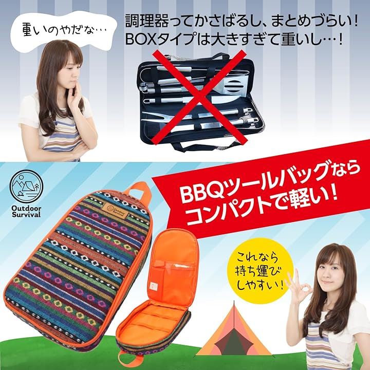 「調理器具のセット収納にぴったり」アウトドア・キャンプ・BBQなど、お出かけになる時に多くなるのが荷物。特にバーベキューなどの調理器具類はかさばるし、刃物等もあり、持ち運びが大変。そんなお悩みの声からかさばる調理器具をコンパクトにひとまとめ。大変役立つオシャレなアウトドアなどの専用調理器収納ケースバッグです。