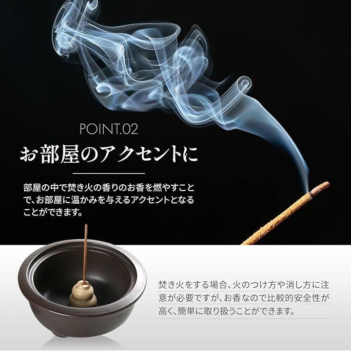 まず、焚き火の香りを楽しめるお香は、アウトドアでのキャンプやバーベキューを思い出させてくれます。