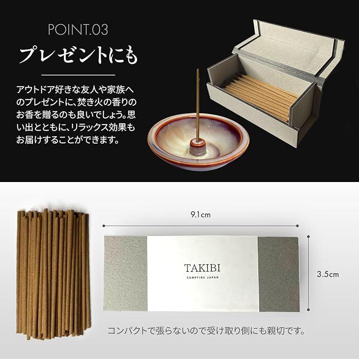 焚き火の香りを楽しめるお香「TAKIBI]には、以下のような魅力があります。