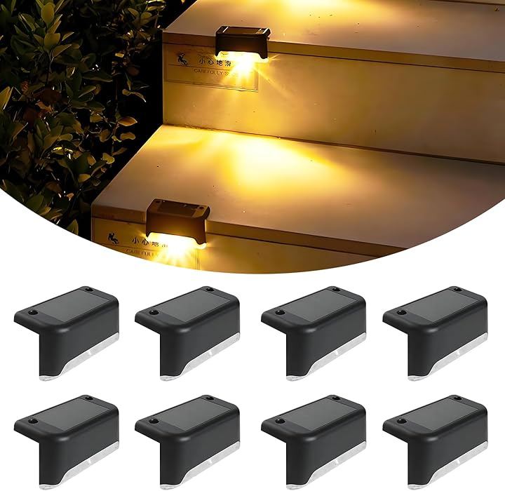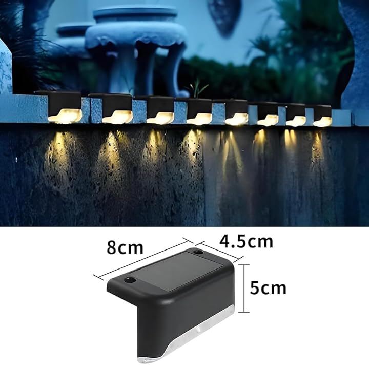 Outdoor Solar-Powered LED Fence Lights with Automatic On/Off Function, Warm White, Waterproof, Suitable for Stairs, Walkways, Gardens, Yards, and Entrances, 8-Pack for Disaster Prevention.