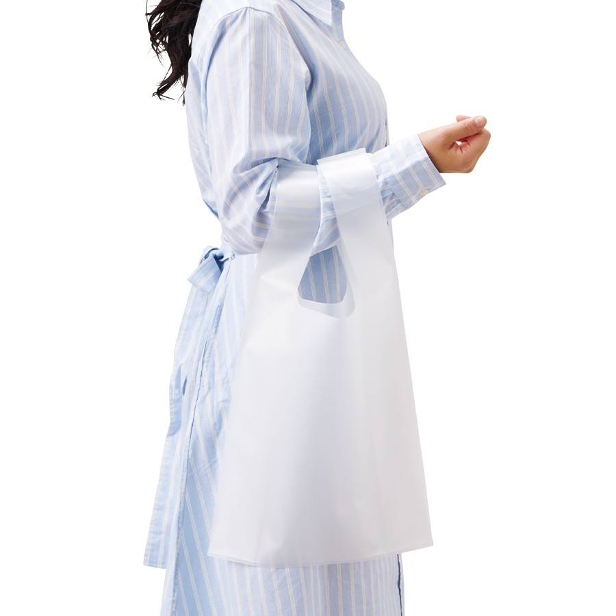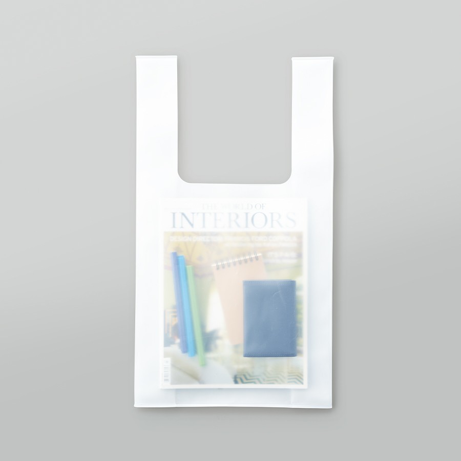 中身が見えやすいEVA素材のマルシェバッグです。やわらかい素材かつ持ち手の太いデザインで、荷物を多く入れても手が痛くなりにくいのがポイントです。MサイズはA4が入るサイズ感で、展示会カタログ入れなどとしてちょうど良いサイズで訴求力もばっちりです。EVA素材は、水や紫外線にも強く、中身が外からでもわかりやすいため普段使いのほか、レジャーやトラベル時にも大活躍するアイテムです。また、EVA素材は塩素を含まず焼却してもダイオキシンが発生しないため、リサイクルがしやすく環境にもやさしい素材となっています。クリアのほか、別ページでブラックの展開もございます。