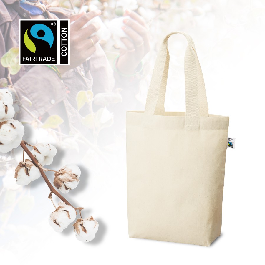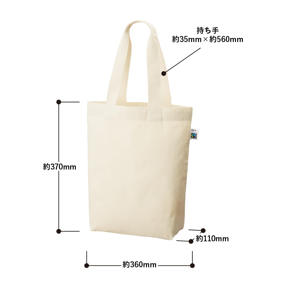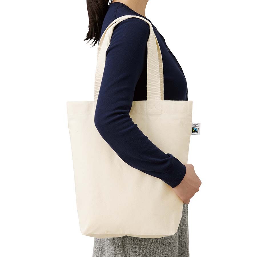 フェアトレードコットンを使用したA4サイズのトートバッグです。薄手生地となっており、人気の船底タイプのマチがついております。お買い物のサブバッグやイベント・展示会の冊子入れなど幅広い用途でご使用いただけます。国際フェアトレード認証ラベル付きのアイテムとなっており、SDGsやサスティナブルへの取り組みで企業価値を高められます。▼フェアトレードとは?フェアトレードとは発展途上国の原料や製品を適正な価格で購入することで、そのような国の人々の生活改善や自治るを支援する活動です。当製品に使用されているコットンもフェアトレード認証生産者から基準に従って調達された認証コットンです。▼国際フェアトレード認証コットンラベルとは?国際フェアトレード認証ラベルは、その原料が生産されてから、輸出入、加工、製造工程を経て「国際フェアトレード認証製品」として完成品となるまでの各工程で、国際フェアトレードラベル機構(Fairtrade International)が定めた国際フェアトレード基準が守られていることを証明するラベルです。つまり、この商品はフェアトレードだという証明書や目印のような役割をしています。