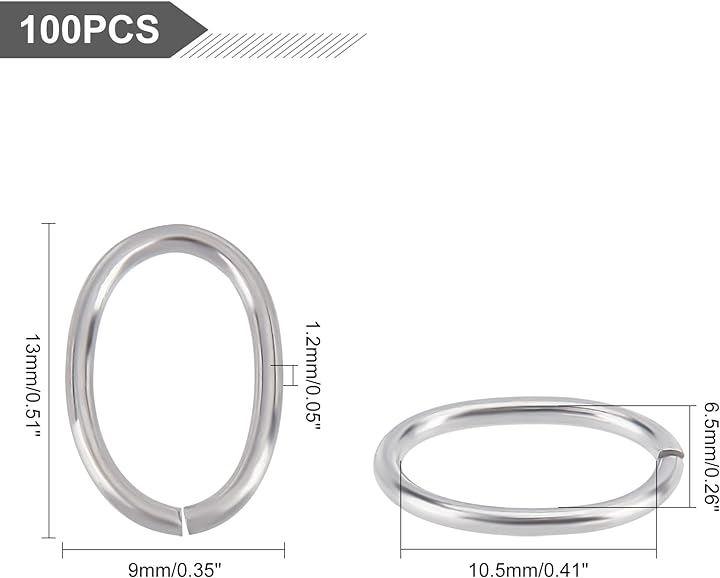 サイズ&入り数:丸環:幅:9mm、長さ:13mm、厚さ:1.2mm;内径:10.5x6.5mm;100個入り;想像力によりおしゃれなジュエリーがDIYできます。