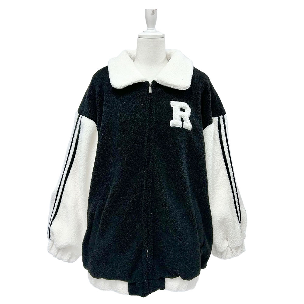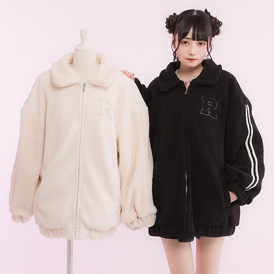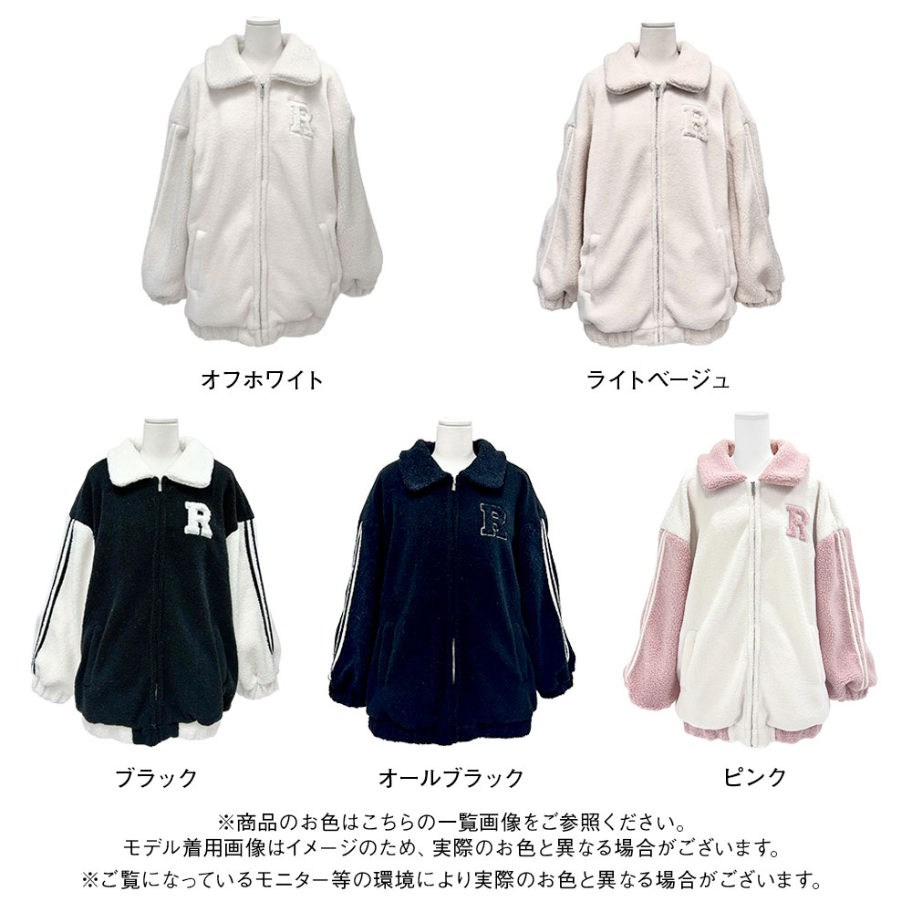 Roseオリジナル☆オーバーサイズボアブルゾンのご紹介。【デザイン】Roseの“R”刺繍が可愛い!オリジナルボアブルゾンです。オーバーサイズ感があざとくて、お袖のラインや配色がアクセントになってくれるデザイン。毛足の長さが絶妙に違うボアをパーツ毎に分けて立体感を出しました♪一見カジュアルなデザインですが、小丸襟でガーリーにも合わせやすいのがポイント◎フロントはコーデに馴染むシルバーファスナーにして、ちょっぴり高見え。他とは被らないとっておきの1枚になること間違いなし♪