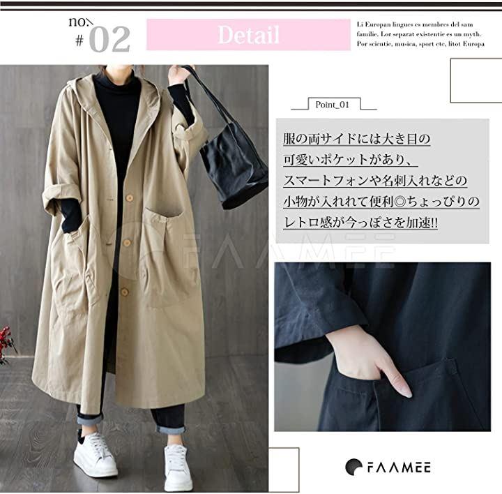 フード付スプリングコートトレンド感満載の女性らしいシルエットをメイクするワンピースは秋、冬、春とロングシーズン大活躍してくれます・季節に合わせた小物やアクセサリーとのコーディネートを楽しむのもいいですね。